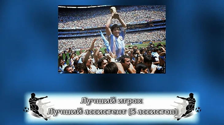 Теперь же речь пойдёт о самом лучшем игроке Чемпионата Мира 1986-ого года среди всех возрастов и одновременно о лучшем ассистенте, и о просто-напросто футбольном гении Диего Марадоне. 5 голов и 5 передач в 7-ми встречах кубка – безумные цифры. Диего выплеснул всю злость, которая накопилась у него после невызова на победный для Аргентины мундиаль 1978 года, и самое главное конвертировал её в голевые действия. 3 победные голевые передачи в стартовой игре с Южной Кореей, ничейный гол с Италией, победный дубль с Англией с «рукой Бога». Про не менее изящные голы, ставшие победными в полуфинале, мы уже говорили. Венцом же стала умнейшая разрезающая передача на Бурручагу за пару минут до конца финального поединка.