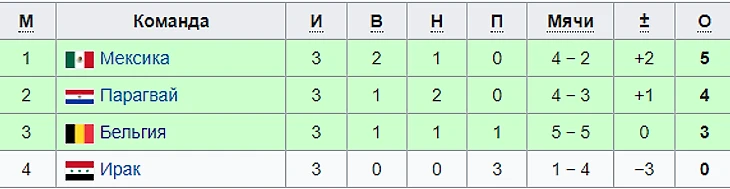 Из 2-ой группы вышли победителями мексиканцы, парагвайцы, а также с 3-его места квалифицировались бельгийцы. Дебютант Ирак отправился домой.