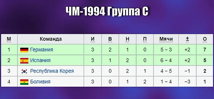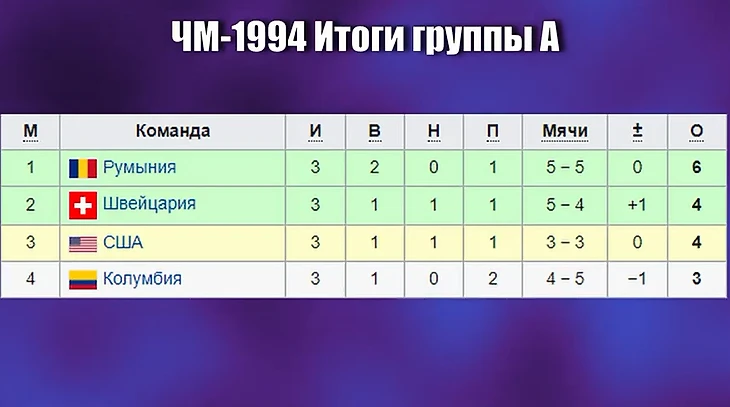 Группу A мы с Вами частично уже обсудили, здесь главным провалом стали колумбийцы, за ужасную игру которых и был застрелен бедняга Андрес Эскобар. Остальные 3 команды, среди которых числились и хозяева американцы, сумели пройти в 1/8 финала.