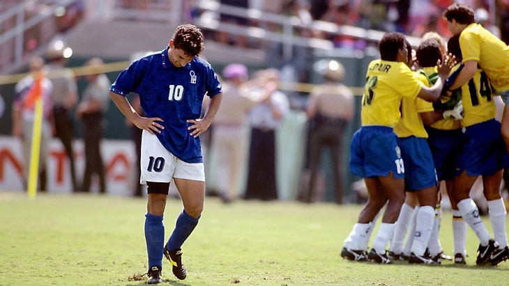 В финале встретятся лицом к лицу трёхкратные чемпионы мира итальянцы и бразильцы. В 1970-ом году они уже выясняли, кто станет 1-ым обладателем 3-х чемпионских титулов, теперь же им предстояло определить 1-ого в истории 4-кратного победителя кубка. Впервые в решающем матче ни одна из команд не сумела распечатать ворота противника. Судьба титула была отдана на откуп серии пенальти. В итоге всё закончилось после удара в небеса тащившего весь турнир «скуадру адзурру» Роберто Баджо. Именно он забил 3 победных гола на каждой стадии плей-офф до финала, и именно ему было суждено совершить самый знаменитый промах 20 века.
