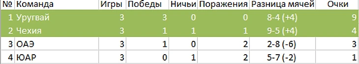 Во 2-ом квартете обошлось без сенсаций, в плей-офф без особых проблем шагнули уругвайцы и чехи.
