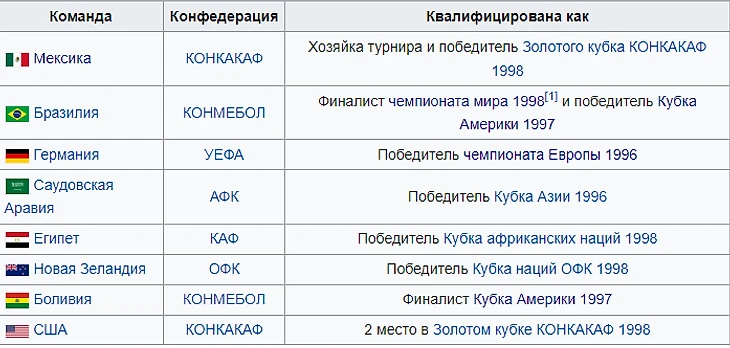 1-ая группа Кубка Конфедераций 1999 года подарила зрителям целый каскад голов. 2 ничьи по 2:2 в играх Египта с Мексикой и Боливией, разгром 5:1 Саудовской Аравии хозяевами мексиканцами с внимание 1-ым покером в истории Кубка Конфедераций, а также разгром Египта саудовцами с всё с тем же счётом 5:1 в последнем туре, причём в той игре тоже был покер. Автор – Марзук Аль-Отаиби. По итогу Мексика с 7-ю очками и Саудовская Аравия с 4-мя скакнули в полуфинал.