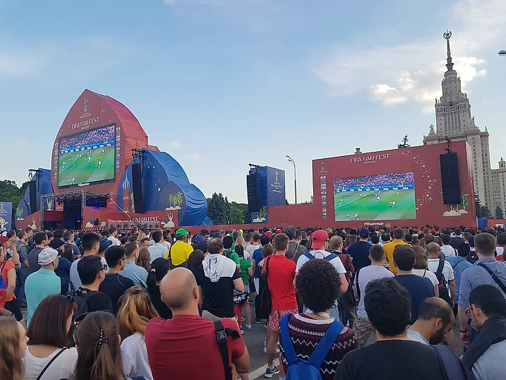 Коутиньо забивает, и мы празднуем с желтыми майками. Цубер равняет - мы в компании с красными и видимо русскими фанами ЦСКА. Все смешалось в этом месте. Чемпионат мира определенно лучшее спортивное событие в мире. Камера на телефоне запотевает от стоящей жары, и мне не удается сделать сколь значимых фото с этого места.