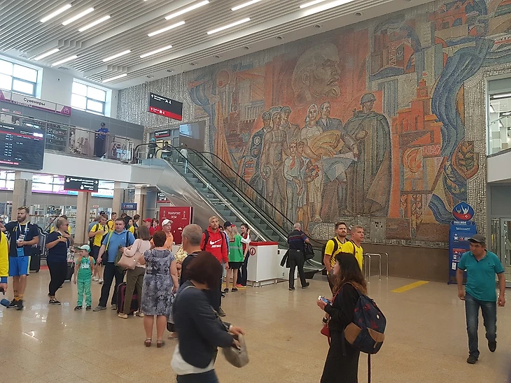 Вокзал Нижнего Новгорода, на который мы приехали ранним утром на поезде FIFA из Москвы, встретил нас портретом Ленина и несколькими заспанными волонтерами в фойе. Для города это был первый матч на чемпионате, и по лицам полицейских, напряженно смотревших на нескончаемую толпу шведов, было понятно - для них это тоже своего рода экзамен. Для большинства болельщиков Швеции, приехавших на этот матч - это был первый ЧМ. Последний раз их сборная играла на ЧМ-06 в Германии. Молодые парни в желтых майках, заполонившие привокзальную площадь, с интересом осматривали карту пути от вокзала до стадиона, попутно интересуясь у местных жителей адресами баров, в которых они могли бы скоротать время до и после матча. До стартового свистка их встречи с Южной Кореей оставалось чуть больше пяти часов.