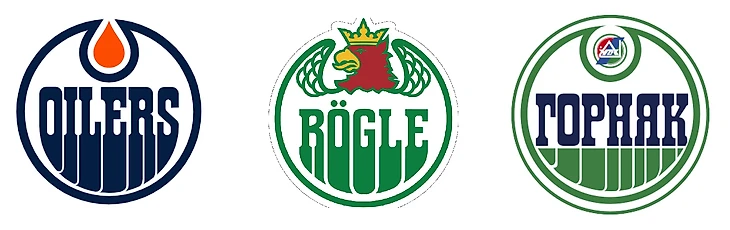 Эмблема канадских нефтяников ими же используется с 70-ых годов прошлого века. За почти пять десятилетий аж два клуба решили позаимствовать идею как по мне тривиального кружка. Рёгле максимально старался подстроить под себя изображение, но подлинник не вышел: закругление с головой вместо капли и растекающиеся буквы являются основанием фигуры. Горняк, благо, совсем недавно провёл так называемый "ребрендинг" и открестился от воровства. Вот могут же, когда хотят.