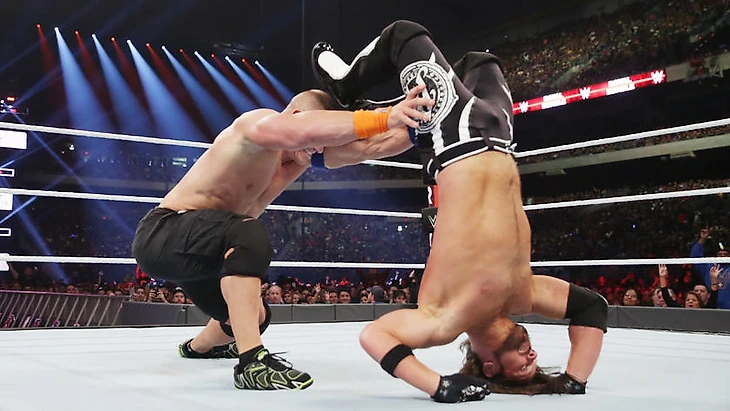 В очередном титульном поединке вечера встретились два человека, которые подходят друг другу, как болт и гайка. Даже не стоило сомневаться, что химия между двумя великими рестлерами даст о себе знать с первых же секунд поединка. Пускай мы и увидели практически зеркальную копию поединка с SummerSlam, но, чёрт возьми, как же это было вкусно и интересно вновь наблюдать. Естественно, не обошлось без первоначальной разведки боем и попытками психологических атак, Сина не забыл упомянуть своей "четвёркой" легендарного Рика Флэра, а Стайлз так и вовсе пытался пару раз провести одну из фирменных "коронок" соперника.