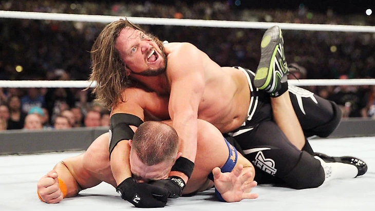 4. Джон Сина победил ЭйДжея Стайлза (ч.) в матче за Чемпионство WWE.