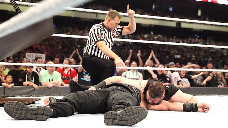 Всё уже шло к тому, что самоанец в очередной раз поднимет над головой заветный пояс, но его внезапно стащил за ноги Брон Строумэн, после чего расклад сил в матче кардинально поменялся. Громила протаранил Рейнсом заготовленный в углу стол, а затем удалился, позволив Оуэнсу одержать ещё одну сомнительную победу.