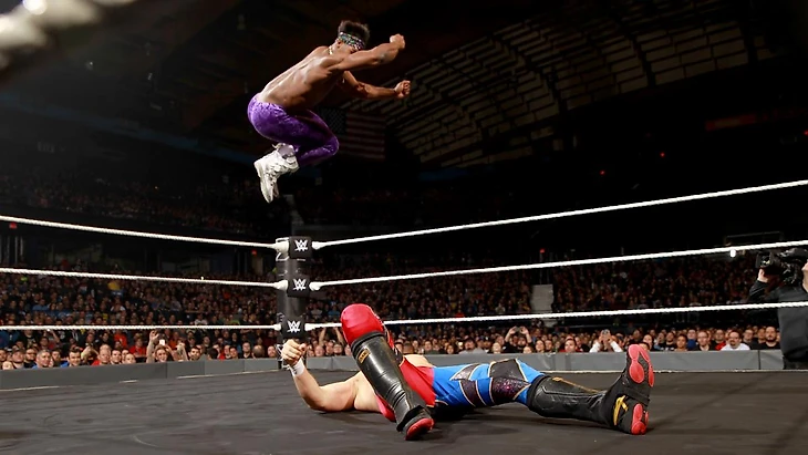 Традиция открывать еженедельное шоу "желтого" бренда матчем Алистера Блэка продолжается. На этот раз Курту Хоукинсу надоело проигрывать в рамках основного ростера, "ни святому, ни грешнику" предстоял реванш относительно недавнего матча с Main Event. В самом начале боя Курт постарался было захватить инициативу, но невероятная работа ногами Блэка, как всегда, ни оставила сопернику шансов. В определенный момент Хоукинс сбежал с ринга, затем вновь вернулся в него и снова сбежал, а все это время его преследовал оппонент, на чем Курт его и поймал, впечатав спиной в аппрон. Но и это плодов не принесло, а Алистер после отличного спрингборд мунсолта и нескольких киков завершил матч коронным Black Mass.