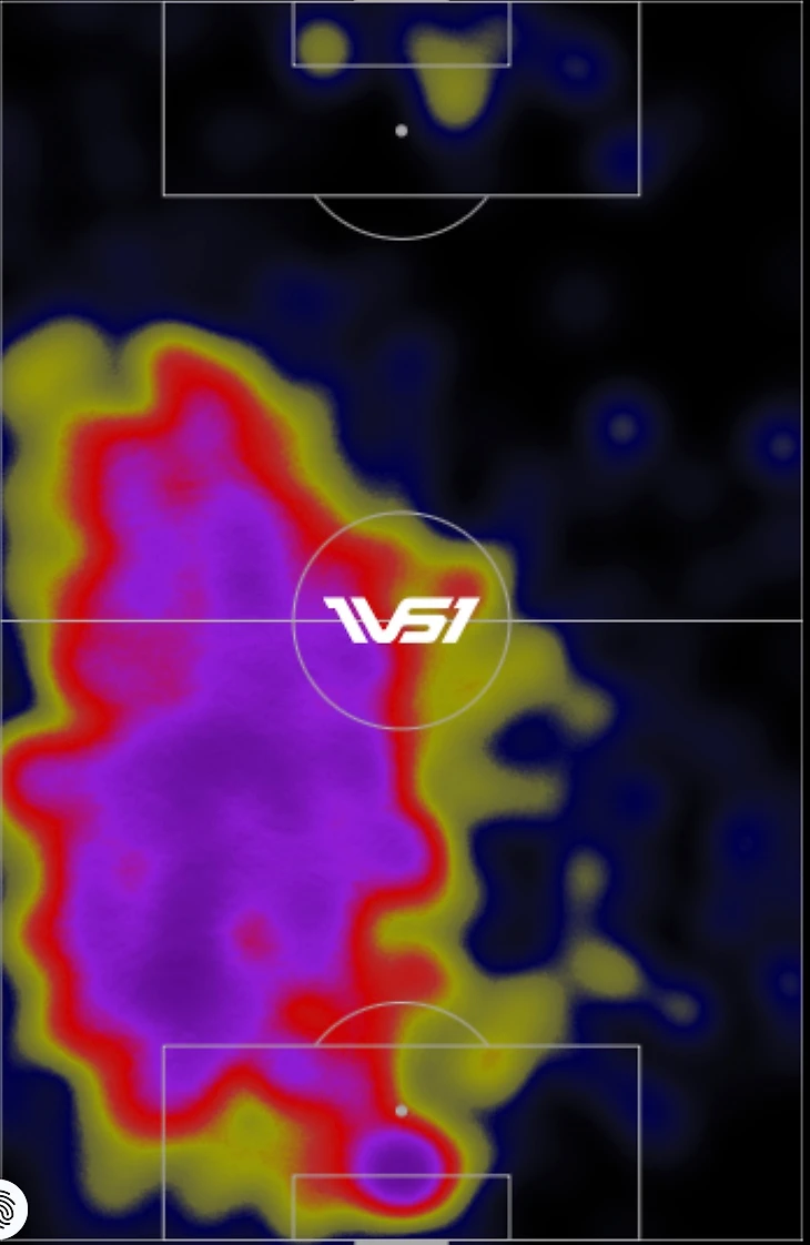 Представляю Вам тепловую карту, что бы Вы сами смогли посмотреть и получить представление о передвижениях испанца на поле: