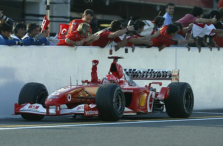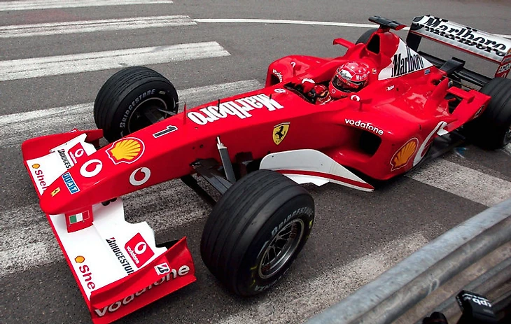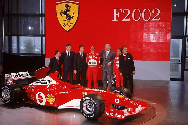 Один из самых известных и красивых болидов «Формулы-1», который выиграл 14 гонок в 2002 году (и еще одну — в 2003-м). На нем «Красный барон» Михаэль Шумахер смог финишировать первым или вторым во всех Гран-при 2002 года и стать пятикратным чемпионом мира. В Кубке конструкторов «Феррари» набрала равное число очков со всеми остальными командами вместе взятыми. Не так много было в истории «Формулы-1» примеров такого уничтожающего доминирования.
