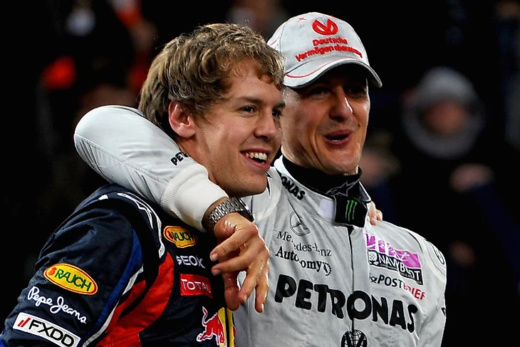 Для меня было честью посоревноваться с ним в Керпене много лет назад, и, да, я тогда постоянно думал о важности момента. У меня всегда были приятные воспоминания о Шумахер. Другое, не менее замечательное, связано с гонкой, которая проходила в Абу-Даби незадолго до его ухода. Я собрал все свое мужество, чтобы подойти к нему и предложить обменяться шлемами. Он поприветствовал меня и согласился, и теперь его шлем – определенно в числе самых крутых вещей в моем доме».
