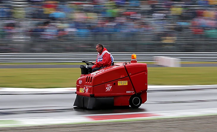 А дальше автоспортивные чиновники с чистой совестью и выражением лица типа «мы же вам говорили» занялись тем, что получается у них лучше всего: каждые пятнадцать минут выпускали сэйфти-кар на трассу, ждали его возвращения и объявляли о продолжении ожидания. В общей сложности заезды затянулись на два часа.