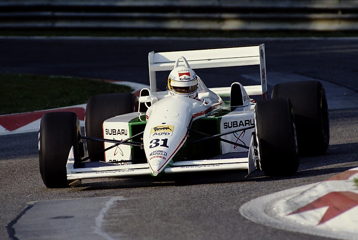 В 1989-1990 годах на волне альянса «Хонды» и «Макларена» еще одна японская компания решила заявить о себе через «Формулу-1». Вот только в головном офисе «Субару» решили сэкономить на постройке силовой установки, отдав ее на аутсорс итальянской компании «Мотори Модерн», которая на тот момент не имела ни единого серьезного гоночного заказа в портфолио. Неудивительно, что двигатель вышел на 100 л.с. слабее конкурентов, да еще и с необычной посадкой и очень низким центром тяжести.
