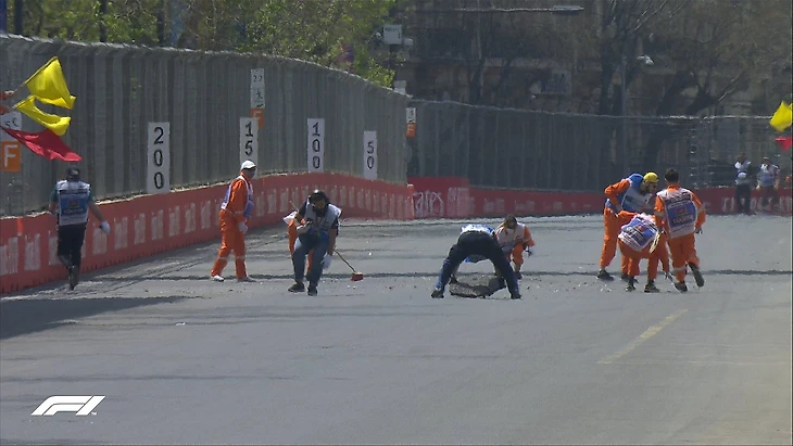 Дорожный люк снова разнес болид «Формулы-1». Отличная работа, Баку!