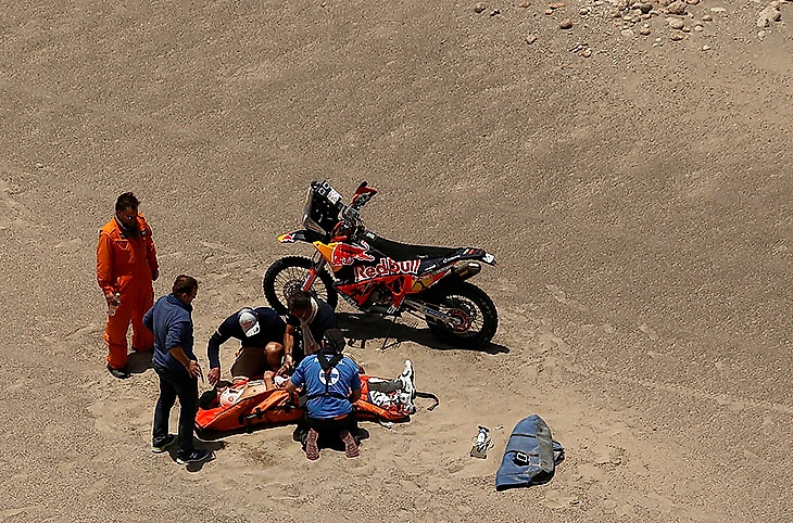 На самом жестоком ралли планеты под названием «Дакар» позади лишь 4 этапа или 29 процентов дистанции, но нынешнее издание эпичного марафона уже доказало свою беспощадность. Лучшие спортсмены сходят один за другим: домой отправились победитель одного из прошлых рейдов Нани Рома, талантливый новичок Брайс Мензис, опытный «пустынник» Язид Аль-Раджи, золотой призер предыдущего «Дакара» в классе мотоциклов Сэм Сандерленд...