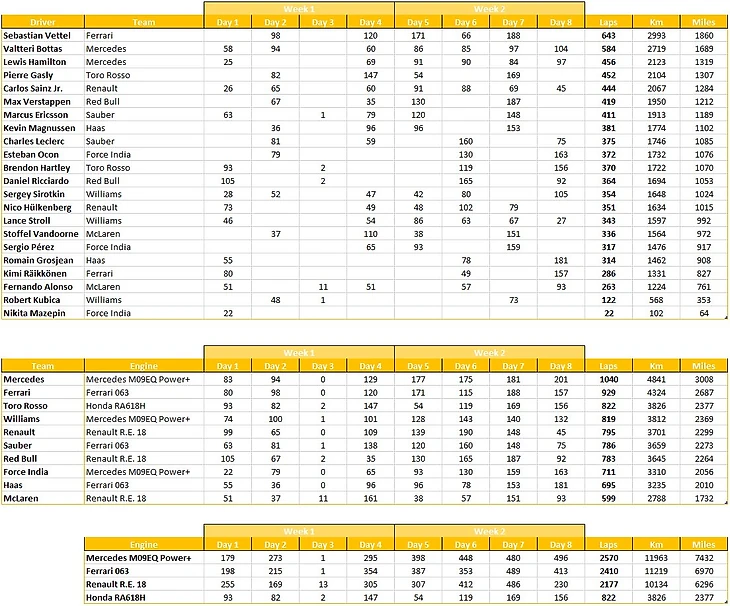 Приз «за лучший зимний прогресс» уходит «Хонде» – японцы вместе с новым клиентом в лице «Торо Россо» проехали 822 круга (третий результат в пелотоне) без единой поломки за две тестовые сессии. Если верить слухам, вторую четырехдневку (498 кругов, дистанция примерно 7-8 Гран-при) Брендон Хартли с Пьером Гасли и вовсе преодолели на одном двигателе — так что корпорация из Токио победила свои проблемы с надежностью. Если учитывать и седьмое время француза, то можно определить «Торо Россо» в середину пелотона – причем соперникам стоит опасаться не только возможного темпа «газировочников»: благодаря заводской поддержке команда из Фаэнцы может обставить конкурентов прежде всего по скорости развития техники.