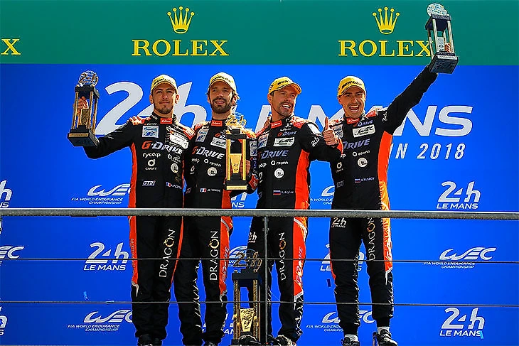 Российская команда G-Drive Racing и Роман Русинов невероятно долго шли к покорению легендарных «24 часов»: в 2018-м гонщик из Москвы штурмовал трассу «Сарте» уже в девятый раз, а для его конюшни нынешняя попытка стала шестой. За все эти годы тандем занимал второе и третье места в классе LMP2 и неоднократно считался одним из претендентов на победу — но выиграть легендарный марафон постоянно что-то мешало. Например, в 2017-м Русинов сам разбил прототип в столкновении с машиной из низшего класса, а в 2016-м первого места фактически стоил штраф в виде проезда по пит-лейн за дозаправку со включенным двигателем.