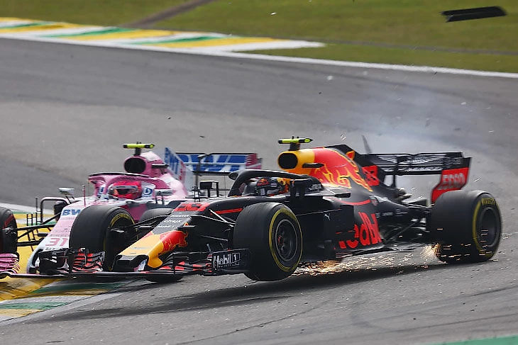 Эстебан Окон получил свежие шины в середине гонки и обнаружил, что едет немного быстрее лидера Макса Ферстаппена. Получив разрешение на атаку от командного мостика «Форс-Индии», француз включил ДРС и накатил на соперника на стартовой прямой — однако скорости не хватило, и пилот «Ред Булл» остался впереди. Тем не менее, Окон не прервал маневр (что, в общем-то, предписывается правилами и синими флагами — любые маневры круговых не должны сдерживать лидеров) и продолжил движение по внешней траектории, перешедшей во внутреннюю. Ферстаппен же продолжил ехать по базовой гоночной линии, не ожидая какого-то подвоха, но все закончилось катастрофой.