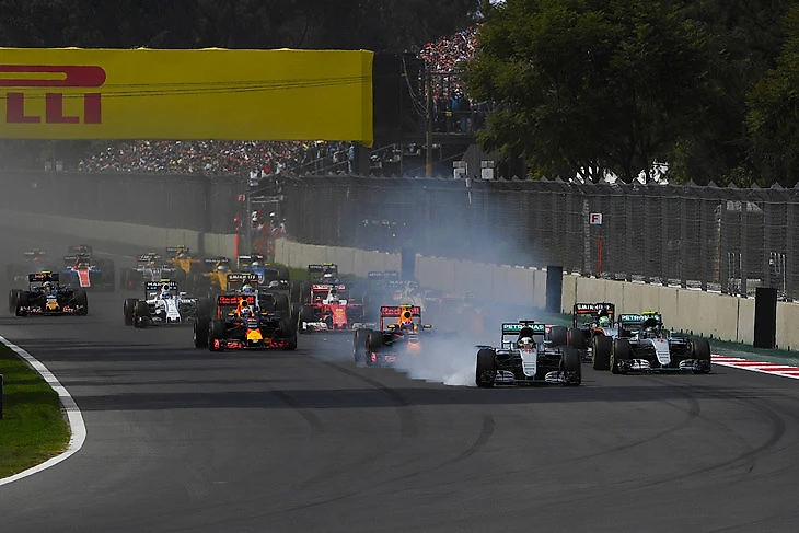 Льюис стартовал с поула, но проиграл первые метры напарнику Нико Росбергу. Тем не менее, на выходе из третьего поворота англичанин оказался быстрее немца и выбрал попытку обгона по гоночной траектории, видимо, решив, что товарищ по команде почему-то не поедет по классической линии. Но Росберг предсказуемо начал смещение вправо, Хэмилтон выехал на траву, потерял контроль над машиной и вынес Нико с трассы, отдав победу Максу Ферстаппену.