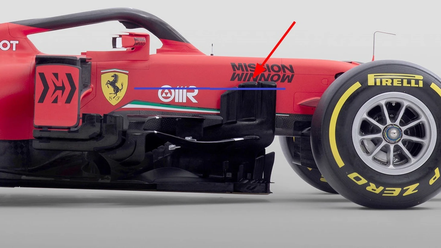 Изменились и сами боковые воздухозаборники: теперь они располагаются чуть выше и стали уже, зато немного длиннее с лицевой стороны. Таким образом больше воздуха перенаправится в «вырез» понтона и на днище с последующим повышением прижимной силы в задней части – еще одна копия идеи «Ред Булл» из 2019-го.