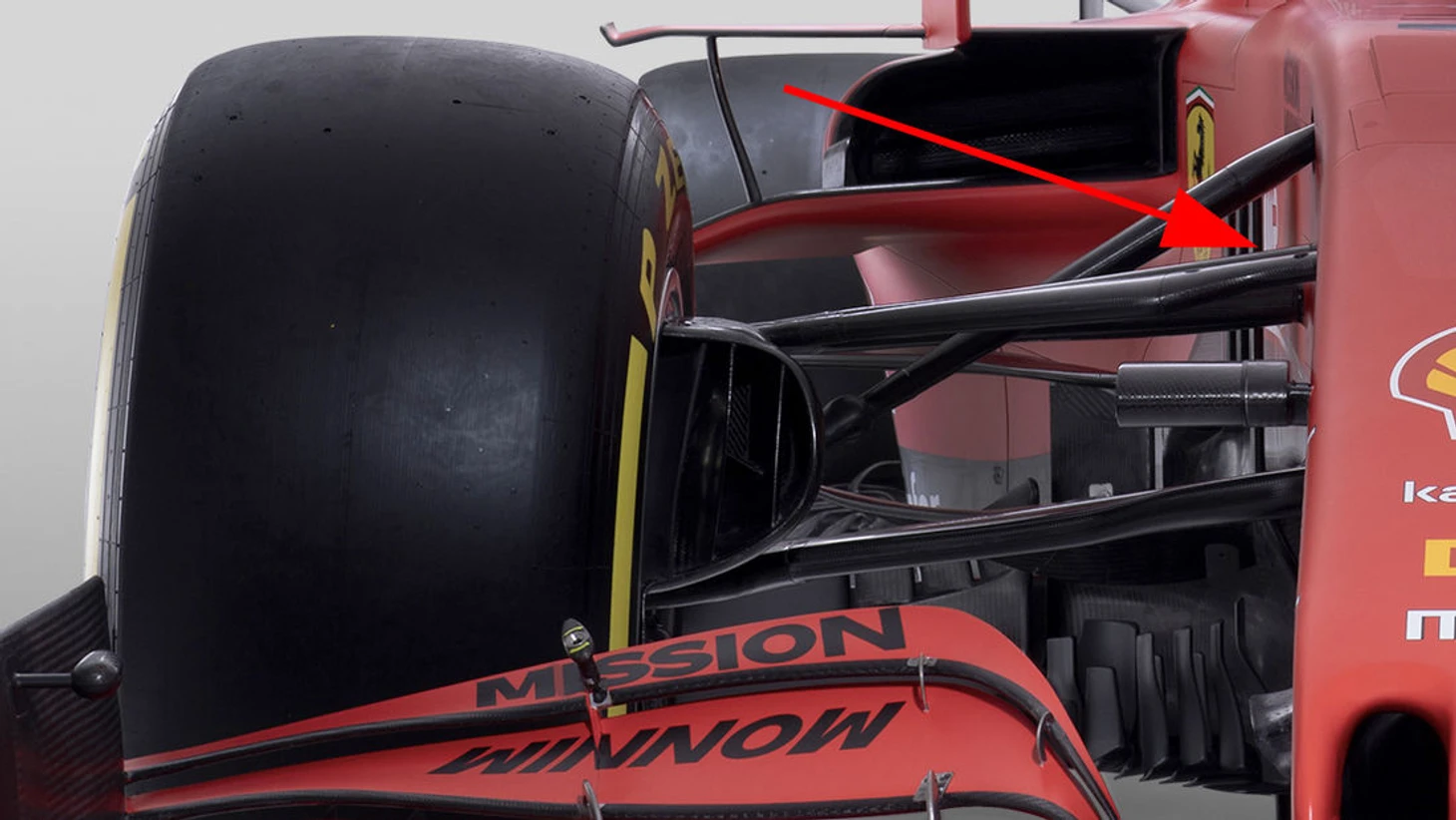 Подвеска теперь смонтирована немного ниже и на двойном пилоне. Благодаря конструкции антикрыла (в основном переправляющей воздух за передние колеса) Скудерия может себе такое позволить (в то время как «Мерседес» и многие другие команды постоянно поднимают ее повыше) – в воздухозаборники системы охлаждения все равно будет попадать довольно чистый и невозмущенный поток.