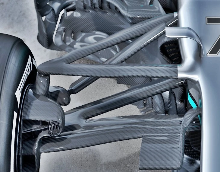Данная зона отличалась сверхпродуманностью еще у W10: конкуренты поражались сложности ее геометрии, а меняющая просвет при повороте руля на угол свыше 210 градусов гидравлика и вовсе считается одним из главных факторов побед «Мерседеса» в 2019-м. Ее смогли скопировать по ходу сезона только в «Ред Булл», но в 2020-м она появится и на болиде «Феррари».