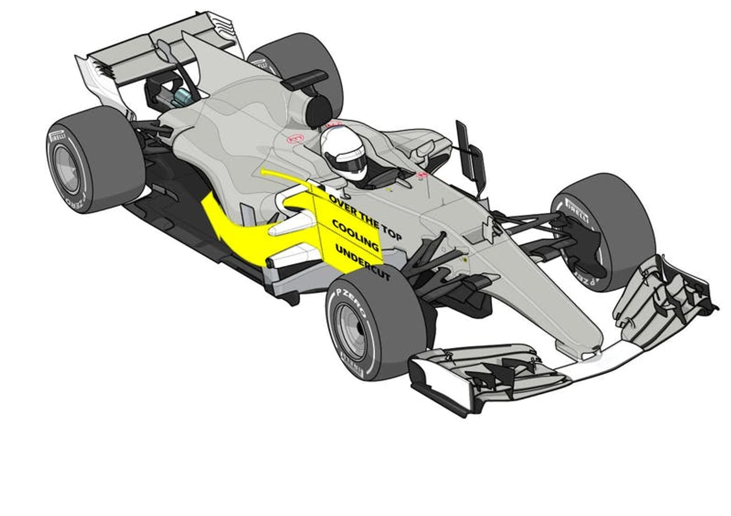 Также стоит отметить и саму форму боковых понтонов: они резко идут вниз, копируя концепцию «Ред Булл» и родоначальника тренда «Мерседеса» – таким образом в примерно тот же объем корпуса влезает более длинный радиатор.