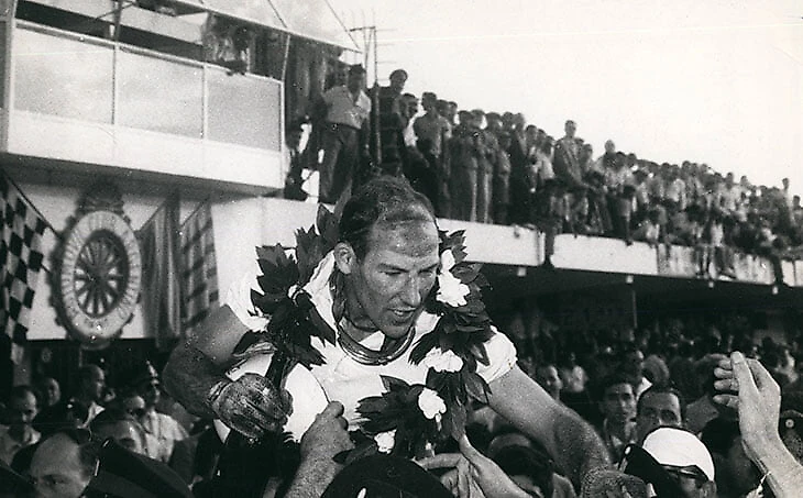Но самая великая победа – «Милле Милья» 1955-го. 1000 миль (примерно 1597 км) по неизвестным дорогам итальянской провинции из Брешии в Рим, 521 конкурент, журналист Денис Дженкинсон в роли штурмана вместо профессионала, два знакомства с соломенными тюками по ходу дистанции, пропуск ключевой автозаправки – и абсолютный вечный рекорд заезда в 10 часов, 7 минут и 48 секунд со средней скоростью в 157,65 км/ч. Гонку запретили в 1957-м, так что хотя бы это достижение у Стирлинга никто не отнимет.