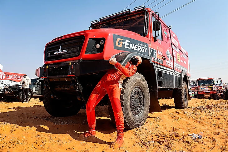 С такой же громкостью на «Дакаре» о себе заявил еще один возможный конкурент «синей армады» в 2022-м – чешский частный экипаж на «Ивеко» Мартина Мацика-младшего. №503 показал третье время на прологе и держался в топ-5 с самого старта, к четвертому этапу даже выбравшись на вторую позицию – но затем пошли технические неполадки, да и молодой экипаж (пилоту и механику по 30 лет) оказался не слишком готов к марафонским отрезкам без заводской поддержки. Итог: 10-е место на этапе и потеря шансов на подиум.
