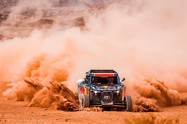 Правда, первая – всего лишь игрушка для шейха Халида Аль-Кассими и не преследует далеко идущих целей: специально под борьбу здесь и сейчас она закупила старые багги «Пежо», оставшиеся после ухода французской организации из рейда заводскими силами. Фактически никакой доработки техника не претерпела и лишь поддерживается большой бригадой механиков, и гоняет в ее составе еще один пилот из ОАЭ Мансур Аль-Хали и пятикратный чемпион «Дакара» Сириль Депре в роли ментора и быстрой технички (в прошлом году он ту же роль выполнял в «Ред Булл»). Вряд ли такая стратегия переживет интерес правящей семьи к автоспорту.