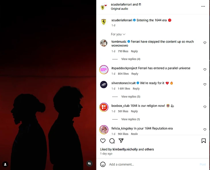 А первый официальный снимок Хэмилтона в «Феррари» рядом с легендарной F40 побил рекорд лайков для сегмента «Ф-1» в инстаграме.