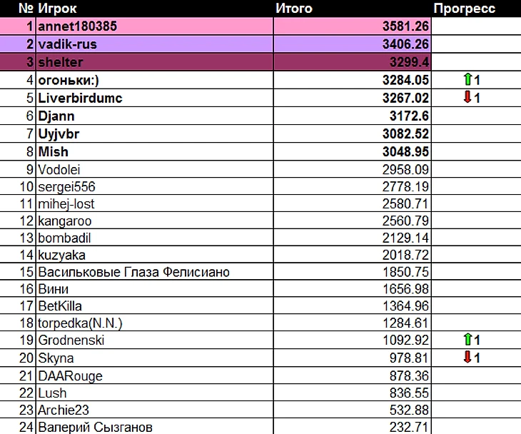 Победителем 8й недели становится vadik-rus Поздравляю!