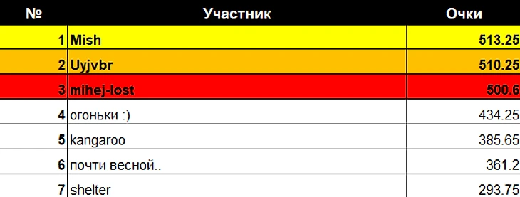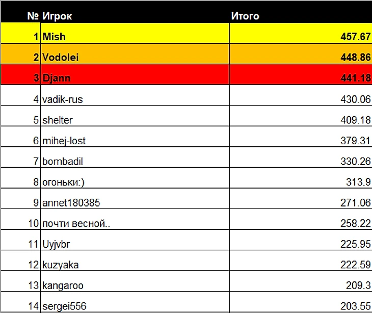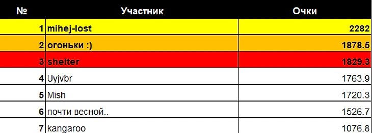 * Не забываем поздравлять чемпионов турнира в коментариях к посту ведь на их месте в любой момент можете оказаться и вы  :)