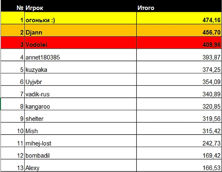 * Не забываем поздравлять чемпионов турнира в коментариях к посту ведь на их месте в любой момент можете оказаться и вы :)