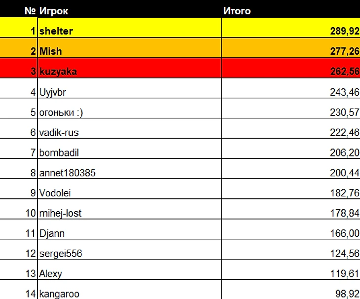 * Не забываем поздравлять чемпионов турнира в коментариях к посту ведь на их месте в любой момент можете оказаться и вы :)