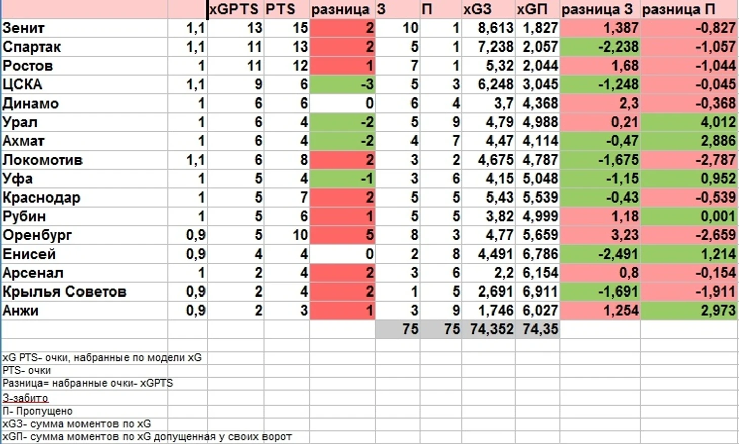 В итоге Альтернативная таблица РПЛ по xG после 5 тура выглядит так: