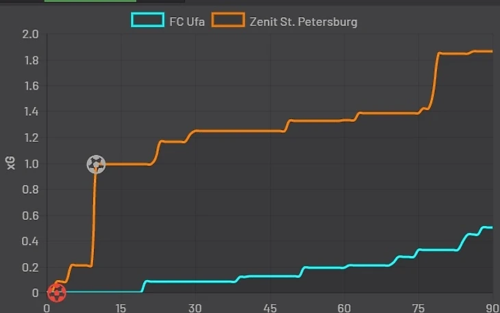 6. Уфа-Зенит (0-2) xG-0,5-2,046 Зенит без проблем в гостях разделался с Уфой, забив два к 11 минуте. Кажется Семак нащупал нужные сочетания и питерцы сейчас выглядят просто мощно. Уфа в этом сезоне совсем грустная и тут дело, кстати, даже не в уходе Семака. Они и при Семаке в прошлом сезоне просто наловили много фарта и выскочили на шестое место, класс команды явно не соответствует прошлогоднему результату. Примечательно, что питерцы, быстро добившись комфортного приемущества, явно стали экономить силы, совершенно отказавшись от прессинга в центре поля (PPDA за этот матч- 16,42, что на уровне Анжи) Отдельно хочу отметить, что "зиданство" оказалось заразным и после Ари этот же трюк с боданием головой провернул Йокич...Короче, 3 очка в Питер без вариантов.