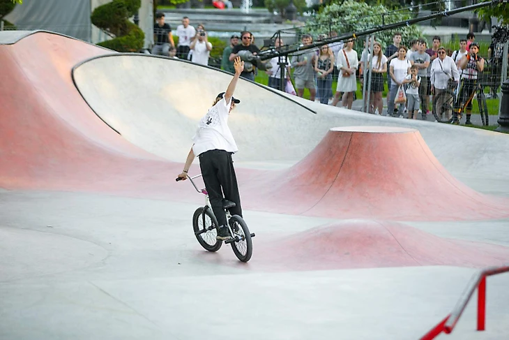 Начиналось все плавно - роллеры разминались, пробовали новые трюки и раскачивали толпу. Но с каждой минутой градус эмоций, а еще и температуры воздуха, возрастал. Вопли сменялись приглушёнными стонами - так зрители реагировали на финальные попытки.