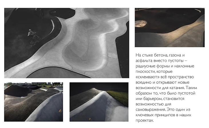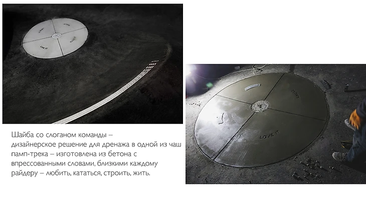 Работа со сложными материалами и их сочетаниями есть результат могущественного скила нашей команды, который позволяет лепить из бетона, как из пластелина, и покорять асфальт, создавая из него формы, недостежимыие ранее для человечества.