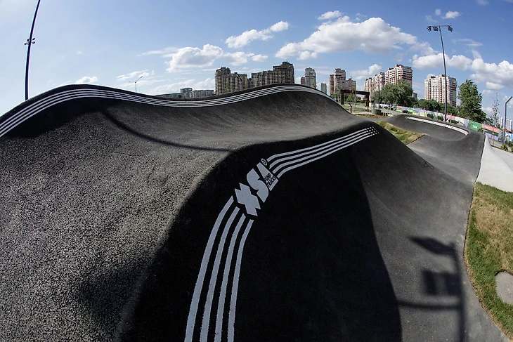 Благодаря центральной фигуре нам удалось создать по-настоящему необычную трассу, выделяющуюся из нашего модельного ряда. Сам трек имеет вытянутую форму и включает в себя 5 контруклонов, но в его центре – двухуровневая фигура. Хребет, возвышающийся над всем пространством, можно использовать практически во всех направлениях: менять с его помощью траектории, проезжать контруклоны первого и второго уровней, прыгать или использовать его как фристайловый спот с трансферами.
