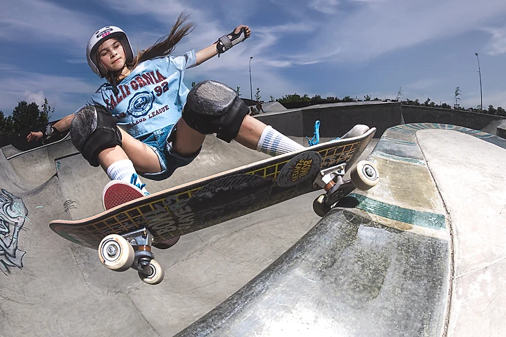 Параллельно со скейтбордингом я занималась спортивной гимнастикой с сильным тренером. Думаю, что этот вид спорта классно прокачал меня и способствовал развитию в скейте — чувство тела, гибкость, координация. Помог и батут, который я посещала с самого раннего возраста. Папа тренировал взрослых, а я присоединялась и даже научилась некоторым трюкам. Вообще я была очень активным ребенком — ходила на руках по улице, прыгала, бегала и лазила всюду.