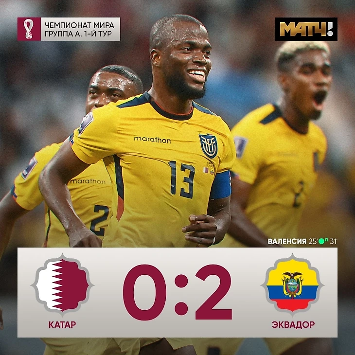 ШКрасивая истории присущи мировым первенствам. И очень круто, что именно в Катаре первым забил и оформил дубль Эннер Валенсия. Ведь именно он посвящает все свои голы умершему в Дохе сокоманднику, местной эквадорской легенде Бенитесу. Валенсия сегодня возможно провел один из лучших матчей в карьере, кто знает, может быть эквадорский Триколор блеснет ещё раз на этом турнире. А пока можно зафиксировать одну важную радостную новость: Чемпионат Мира ОТКРЫТ!!! Пусть и не хозяевами, но история футбола снова пишется - необычно и экзотично.