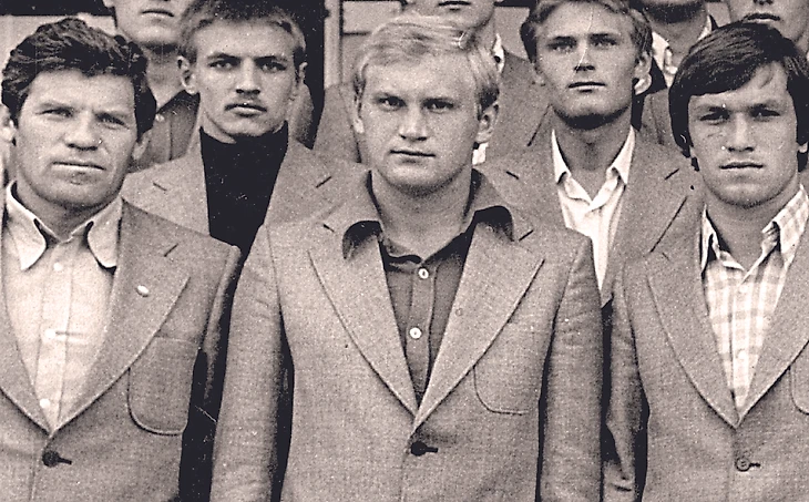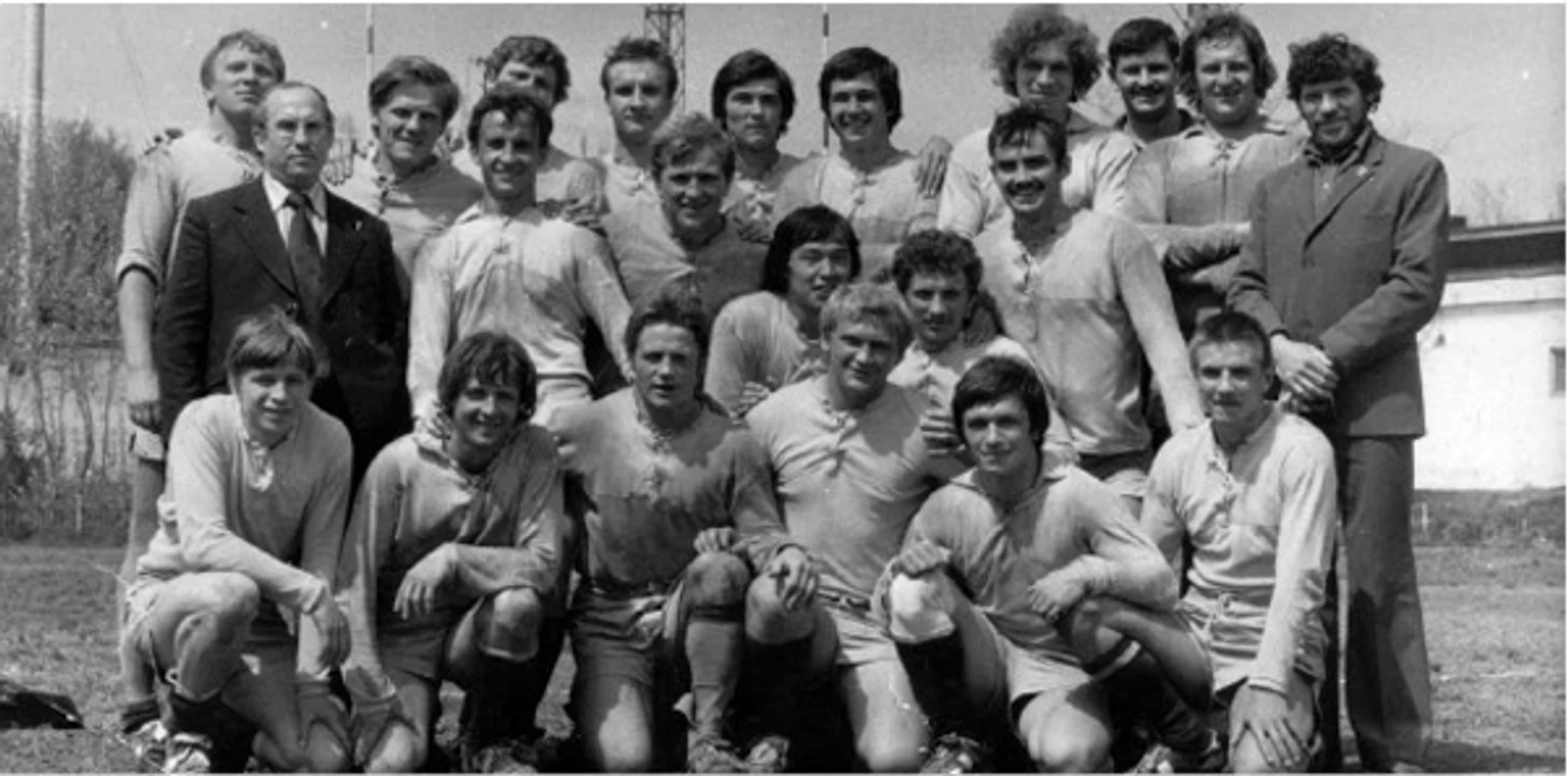 Верхний ряд: Евгений Кобылкин, Аркадий Никитин, Виктор Соломатов, Юрий Иванушкин, Владимир Дарьенко, Рамиль Хайруллин, Сергей Федоров, Сергей Кузнецов, Михаил Мячин, Леонид Сабинин - главный тренер. Средний ряд: Вениамин Александрович Цимик - начальник команды, Анатолий Ивашкин, Иван Речнев, Виктор Коков, Владимир Покало, Юрий Соколов. Нижний ряд: Василий Кузубов, Владимир Грачёв, Владислав Тельняков, Леонид Ковель, Сергей Чупров и Георгий Филинов.
