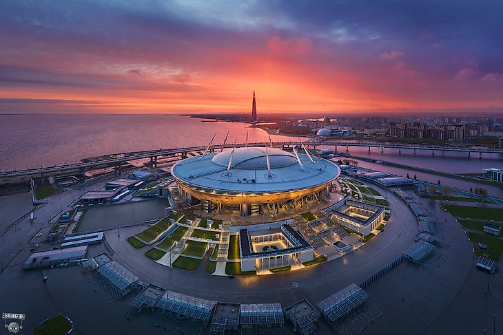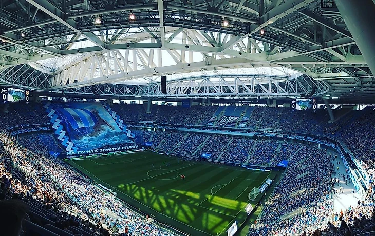 «Газпром Арена» - один из самых новых и больших стадионов в России, построенный на месте снесенного в 2006 году стадиона им. М. С. Кирова. Он был введен в эксплуатацию только в 2016, но уже успел принять матчи Кубка Конфедераций и Чемпионата мира. Нельзя не сказать и о том, что финал Лиги Чемпионов в 2022 году также пройдет в Санкт-Петербурге. Вместимость достаточно большая - примерно 62 тысячи человек.
