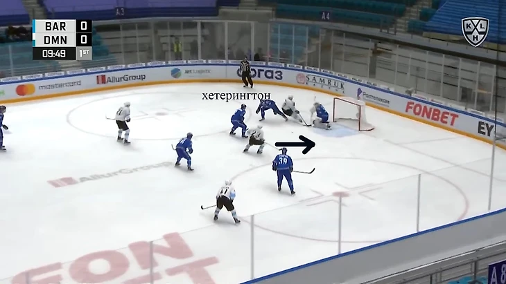 8. Высокий прессинг заставил игроков «Барыса» совершать слишком уж высокий процент брака в передачах и в приеме шайбы. Второй гол в ворота «Барыса» – яркий пример, к чему может привести неудачный пас назад. Шестаков решается на уже привычный пас на синюю линию (о котором было выше), а уже один из самых ошибающихся игроков матча Хетерингтон проигрывает борьбу за шайбу Воронину. Выход 2 в 1, Воронин катит шайбу на Бозуна, а тот делает дубль. С тезисом о большом количестве брака согласился защитник «Барыса» Никита Клещенко. «Правильно подметили, что было много брака в передачах, шайба скакала. Многие вещи не получались именно технически. Но если не получается технически, то надо брать характером».
