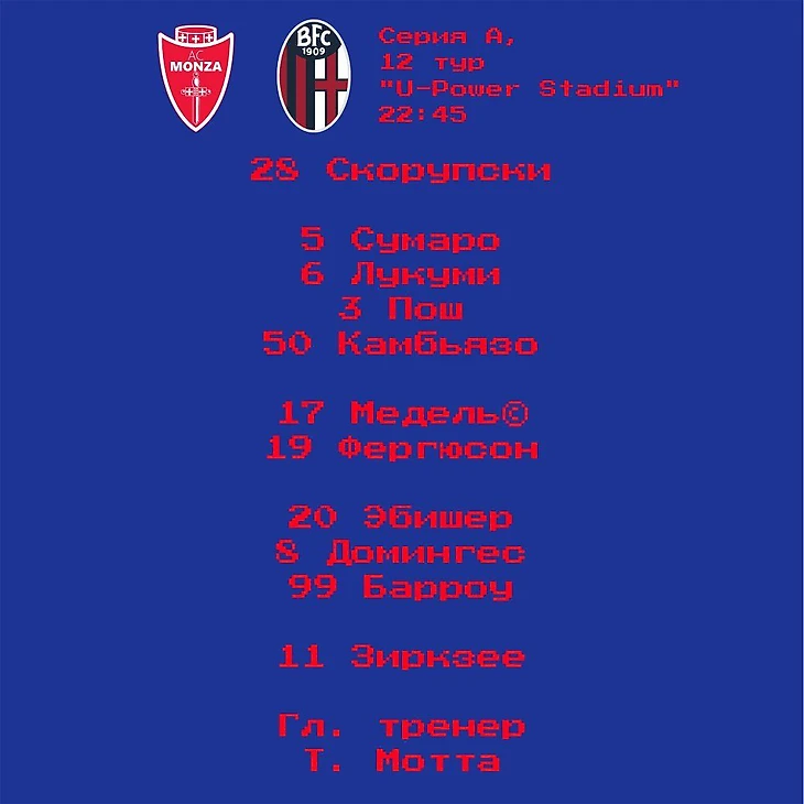 Теперь именно этот первый тайм - лучший в сезоне для БФК, что более ценно: "Монца", в отличие от "Лечче" неделей ранее, понимала, чем отвечать и первой создала опасный момент. Однако в целом именно команда Тиагу Мотты смотрелась предпочтительнее. Футболисты очень здорово перемещались по полю, создавая варианты для продолжения атак. "Болонья" могла забивать дважды, но удар Зиркзее потащил Ди Грегорио, а затем он же спас монцези после удара Сумаро головой.