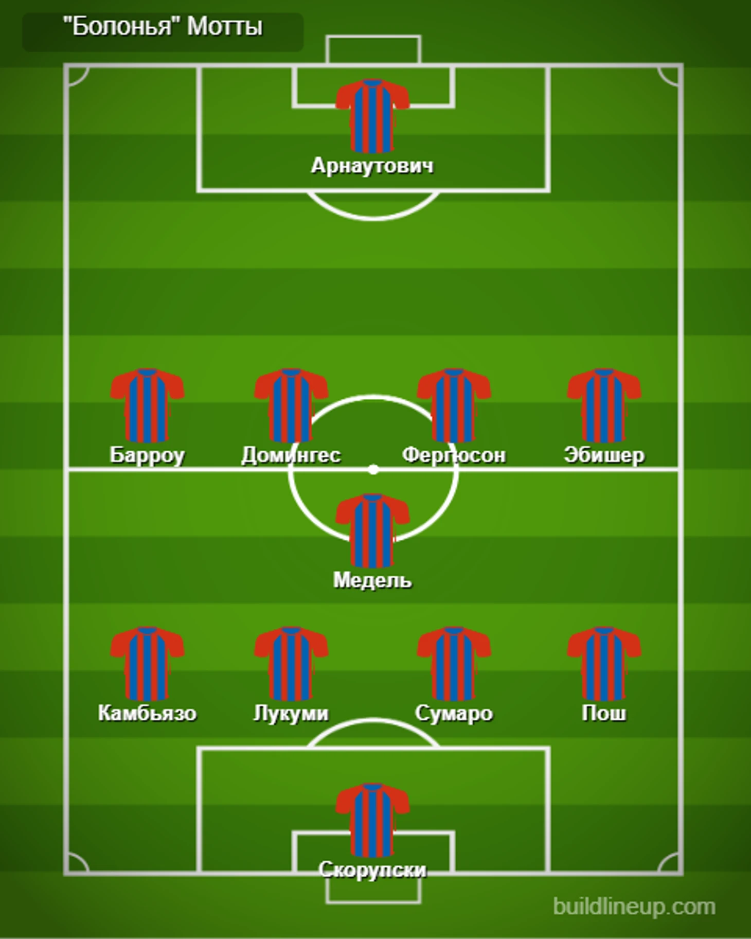 Перед Меделем располагается четверка полузащитников с совершенно разным функционалом. В идеале это Николас Домингес, Льюис Фергюсон, Мишель Эбишер и Муса Барроу. Домингес и Фергюсон играют ближе к Меделю и даже способны ситуационно подменять чилийца в опорной зоне, хотя основные их задачи в другом. Домингес — невероятно разносторонний и одаренный футболист. "Я могу попросить его выполнить любую задачу на поле, и он сделает это блестяще", - восхищается своим подопечным Мотта. В зависимости от своего положения — низко, рядом с Меделем, или высоко, почти на одной линии с Арнаутовичем — Нико использует разные приемы. Он одинаково хорошо раздает длинные и средние передачи из глубины, а также короткие разрезающие — в финальной трети. Фергюсон — настоящее открытие Мотты. Игрок, получавший крохи игрового времени при Михайловиче, стал незаменим при новом тренере. Главная характерная черта шотландского хавбека — умение оценивать пространство перед собой и врываться в свободные зоны как с мячом, так и без него. Неспроста именно Фергюсон — лидер среди всех игроков средней линии "Болоньи" по числу касаний в чужой штрафной (16). Также Льюис банально много забивает: девять игр, три мяча (все — при Мотте).