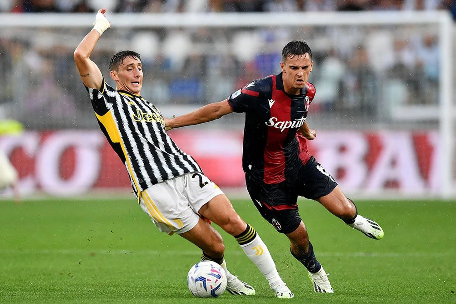 Орсолини стартовал с капитанской повязкой. Первый капитан Домингес остался в запасе и это явный сигнал скорого расставания с аргентинцем. Аккурат до игры многие рисовали в старте Джованни Фаббиана, но Мотта предпочел проверенных людей в центре. В начале первого тайма ситуация могла качнуться в обе стороны, но затем "Болонья" прибрала нити игры в свои руки. Первая опасность возникла после высокого отбора БФК: Зиркзее покатил на Ндойе, но шверйцарец пробил неакцентированно, в руки Перину. Дальний удар Моро мимо створа в рассчет не берём. Сразу после случился гол БФК: Зиркзее умудрился сделать точный пас под прессингом, Фергюсон ворвался в штрафную из глубины, не встретил сопротивления и положил в дальний. С этого момента и до середины второго тайма "Ювентус" выглядел предпочтительнее. Команда Аллегри взвинтила темп - помогли неожиданные включения Веа в центр поля и то, что Кьеза стал стартовать строго с левого края, имея возможность для разгона. "Юве" даже забил, но мяч Влаховича отменили из-за вне-игры у Рабио. Мотта отреагировал на активность соперника заменами: выскочили бешеный Карлссон и опальный Домингес. "Россоблу" стали увереннее контролировать мяч. В одной из атак гостей произошел, кажется, ключевой эпизод: Ди Белло не поставил пенальти за фол Айлинга на Ндойе. Оставим это за скобками - а вот попустительство Лукуми и юного Кораццы, которые не смогли закрыть Влаховича в моменте, когда сербский нападающий "Старой Синьоры" забивал головой, оставить без осуждения не получится. Остаток встречи команды не играли - бились. Итоговая ничья, несмотря на обстоятельства, - результат приемлемый. "Болонья" показала невероятную волю и мастерство, сыграла достойно и заслуживает похвалы.