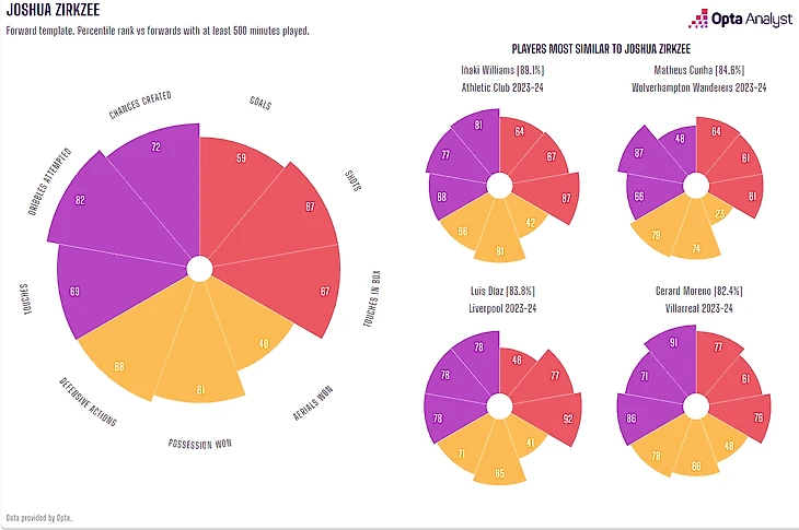 Оба защитника – новички, пришедшие летом. Калафьори вообще рассматривался, как опция на левый фланг защиты, но заиграл в центре, да так, что даже главный тренер сборной Италии Лучано Спаллетти назвал его «Гарантом спокойствия обороны». 21-летний итальянец реанимировал карьеру после травмы крестов и сейчас играет волшебно, успевая и в защите (99 перцентиль по возвращенным владениям), и в атаке. В последний раз так в нападение ходил только Такехиро Томиясу, ныне выступающий за «Арсенал».